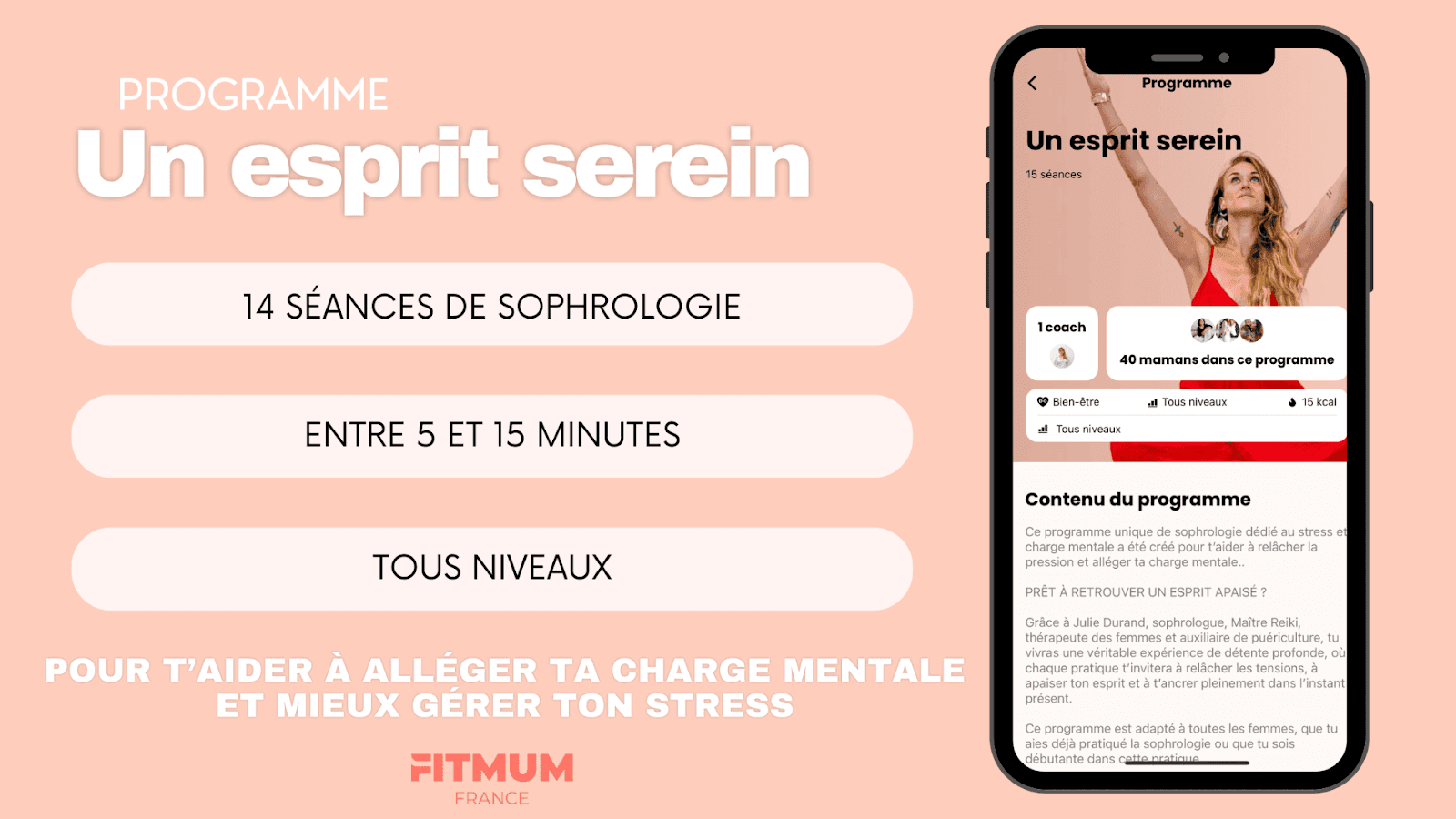 Et si tu veux être accompagnée au quotidien pendant cette période, l’application FitMum France est là pour toi : des séances courtes, des programmes adaptés et des routines bien-être pour bouger, souffler et retrouver ton calme, même quand ton planning déborde.