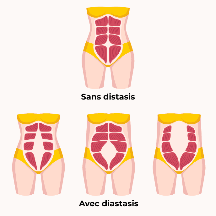 Ces symptômes varient d’une femme à l’autre, mais traduisent souvent un diastasis des grands droits.