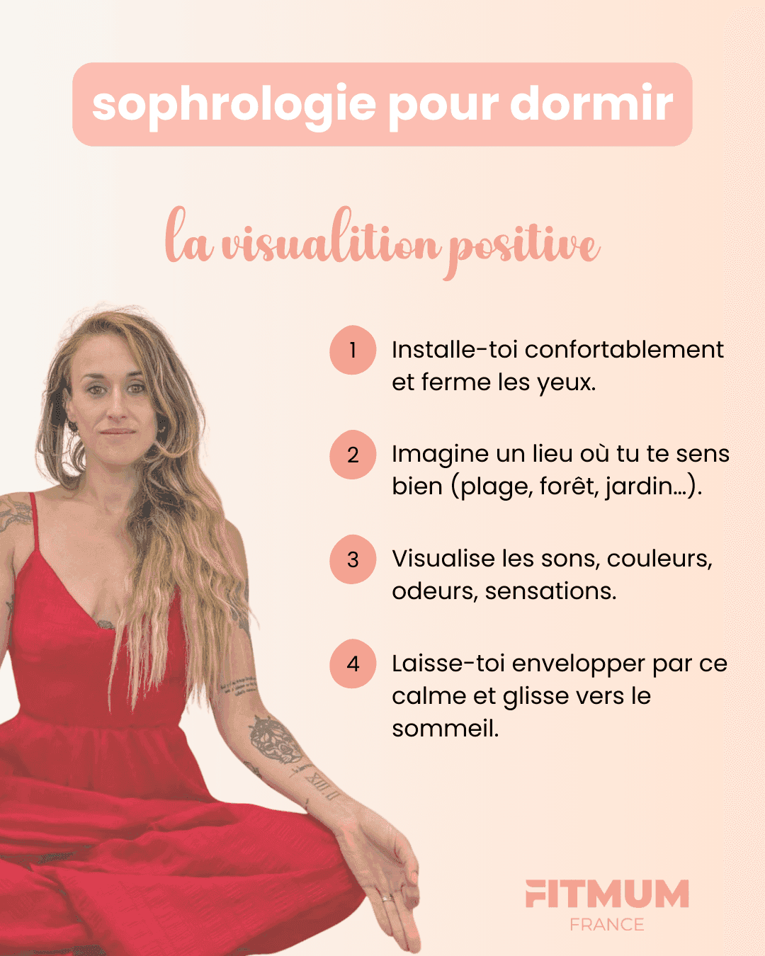 🌙 Si tu veux découvrir d’autres séances de sophrologie pour dormir et être guidée pas à pas, le programme de sophrologie Un sommeil serein disponible sur l’application FitMum France, t’accompagne au quotidien pour retrouver un sommeil apaisé.