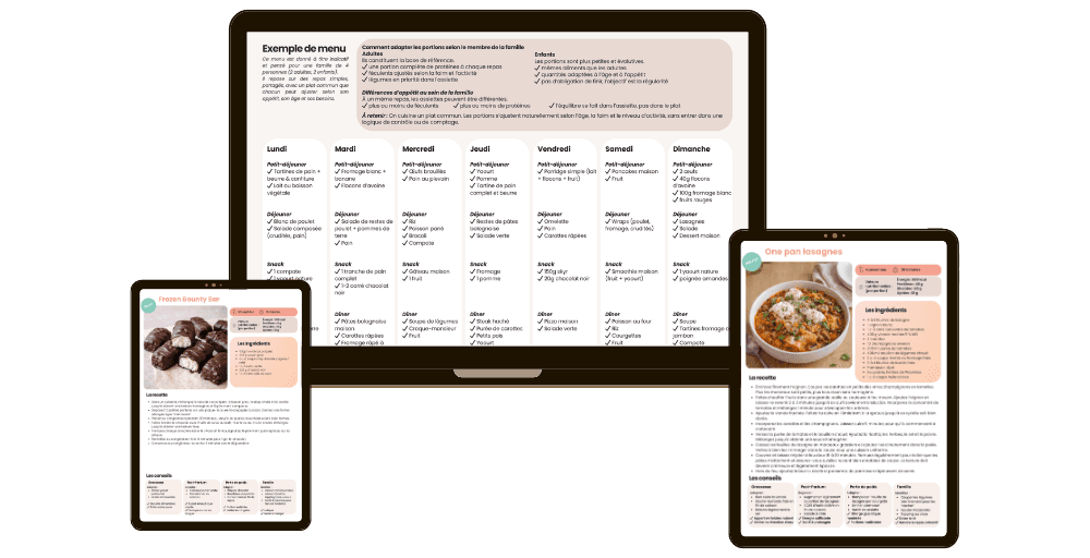 Accède chaque mois à 35 nouvelles recettes et des idées de menus adaptés à chaque étape de ta vie : grossesse, post-partum, perte de poids et vie de famille.