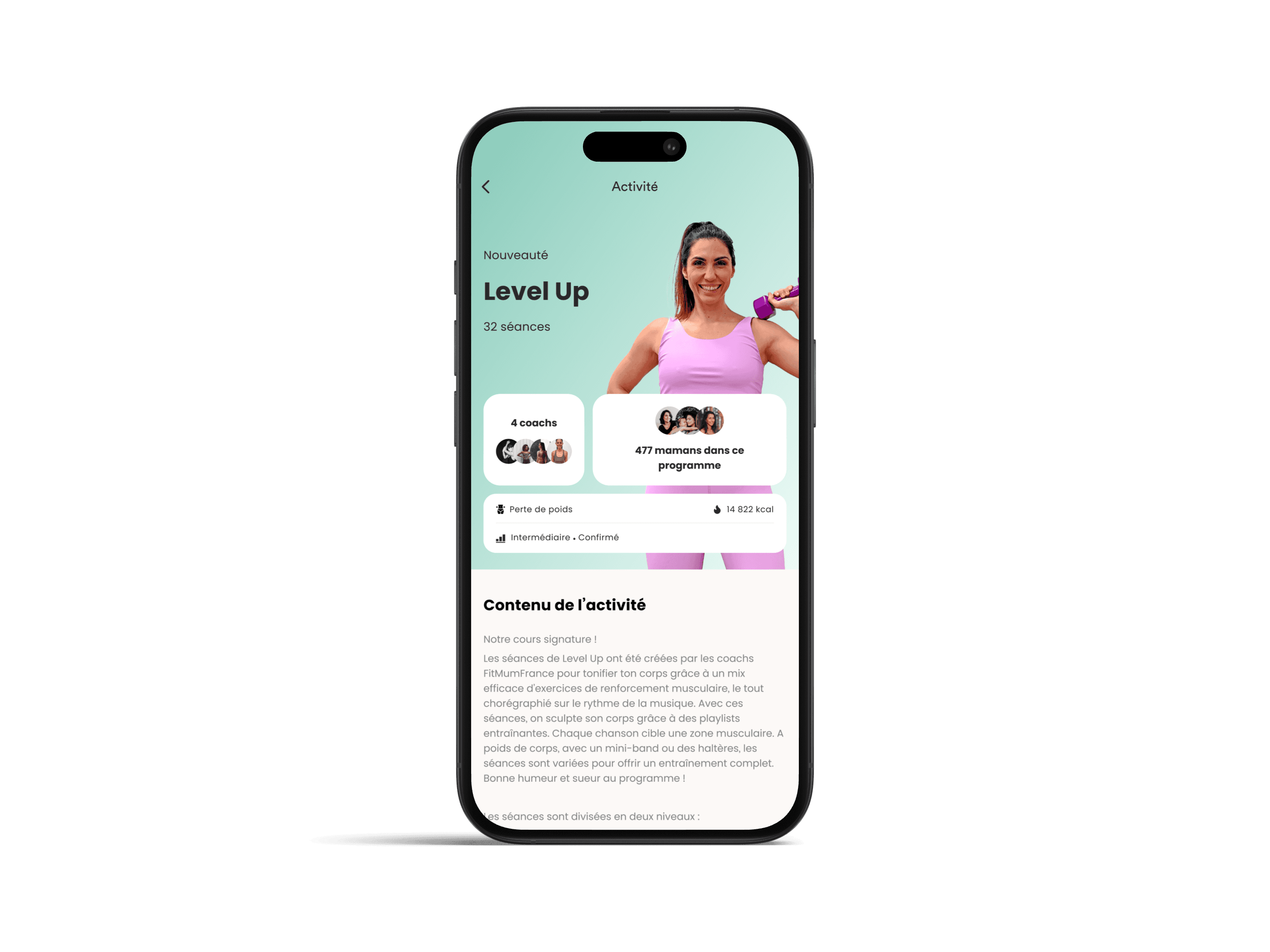 ✔️ Accédez à plus de 20 programmes de sport à la maison spécialement conçus pour les mamans (grossesse, post-partum, remise en forme, renforcement musculaire…).