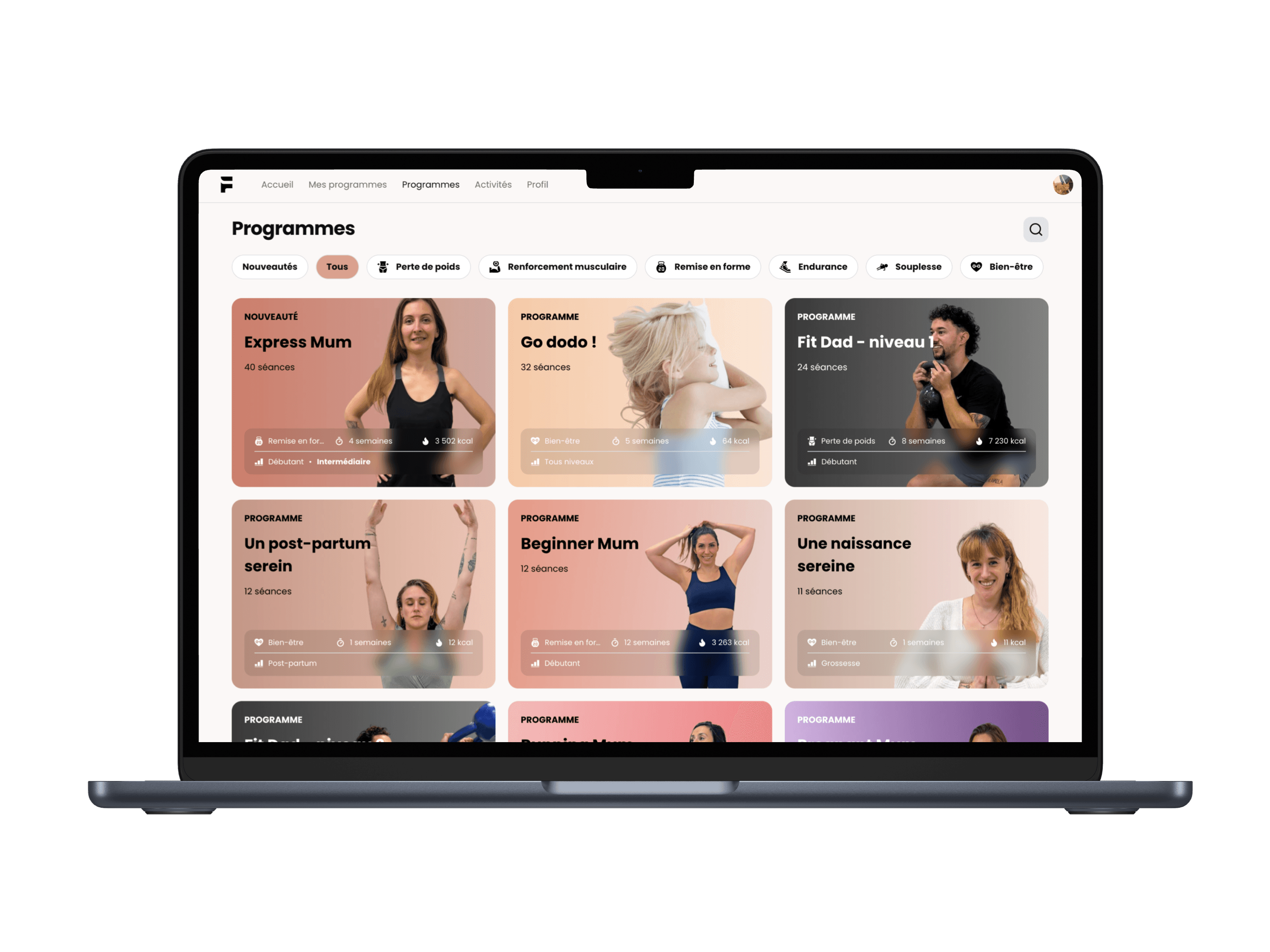 ✔️ Accédez à plus de 20 programmes de sport à la maison adaptés aux mamans, du post-partum à la remise en forme complète.
